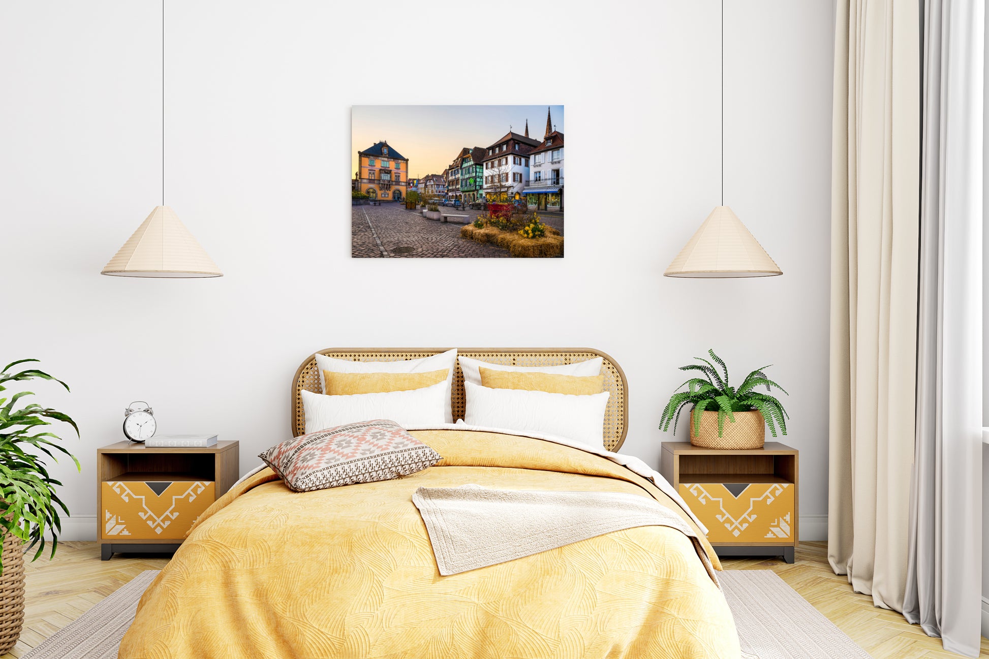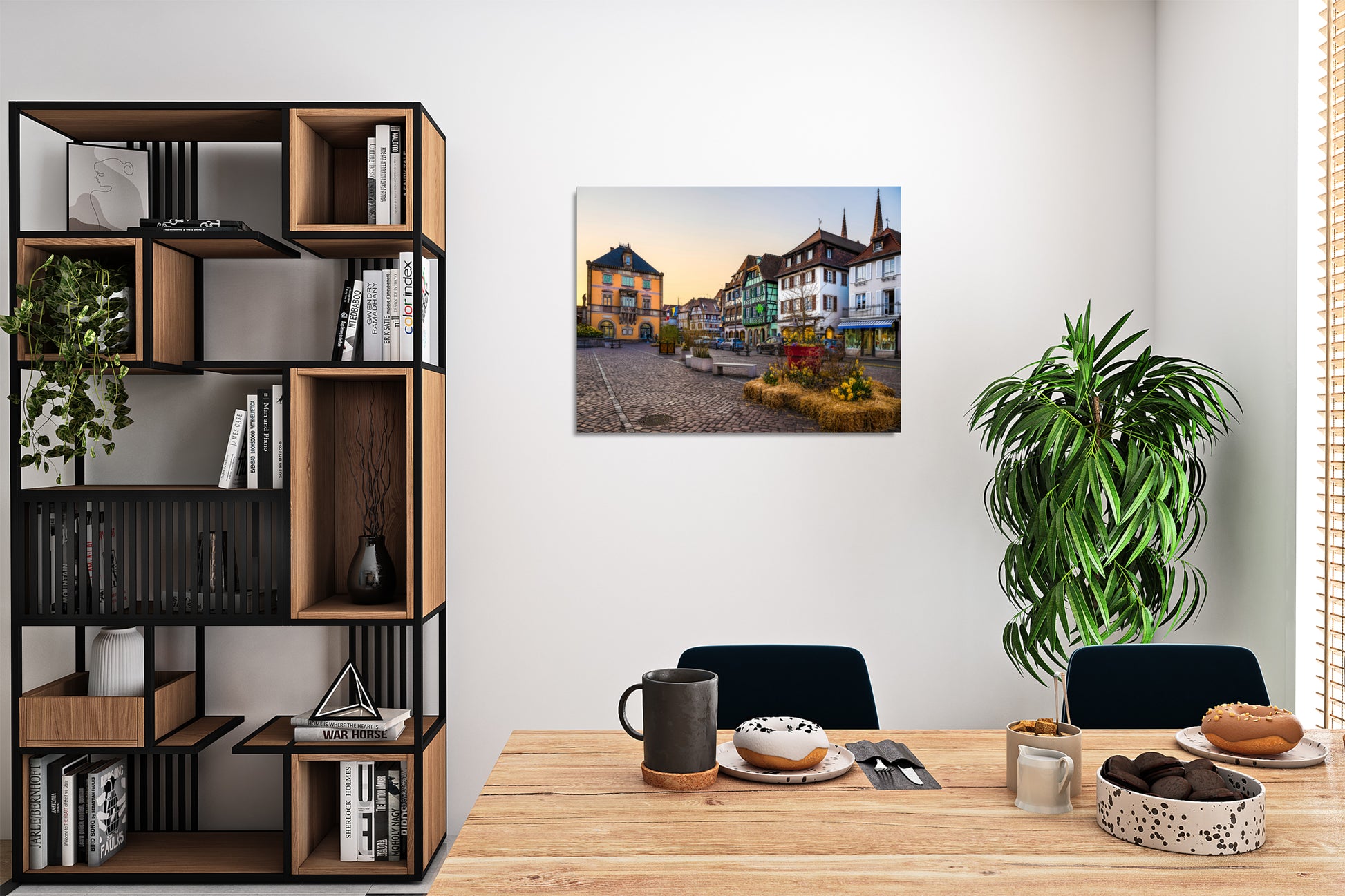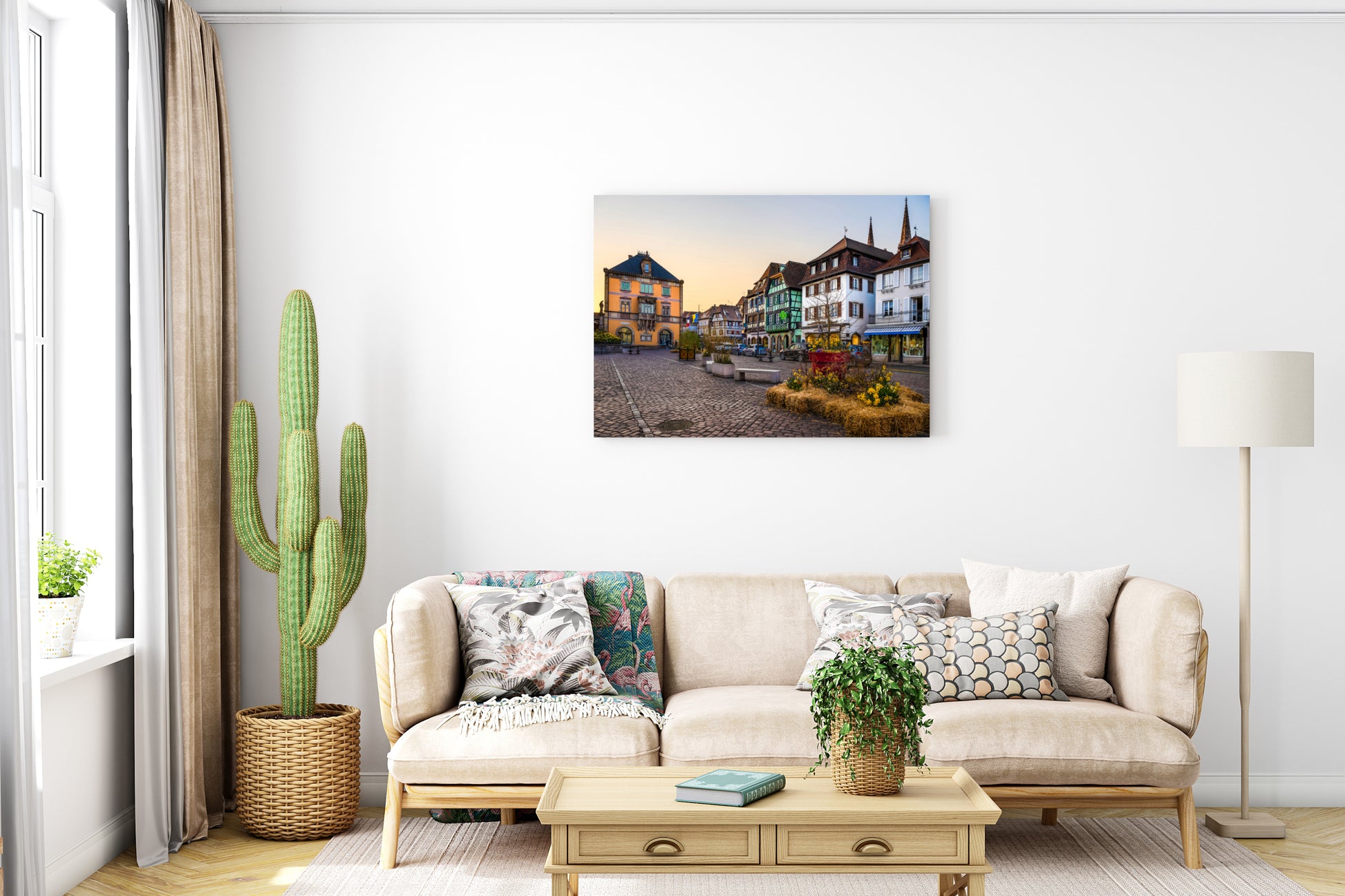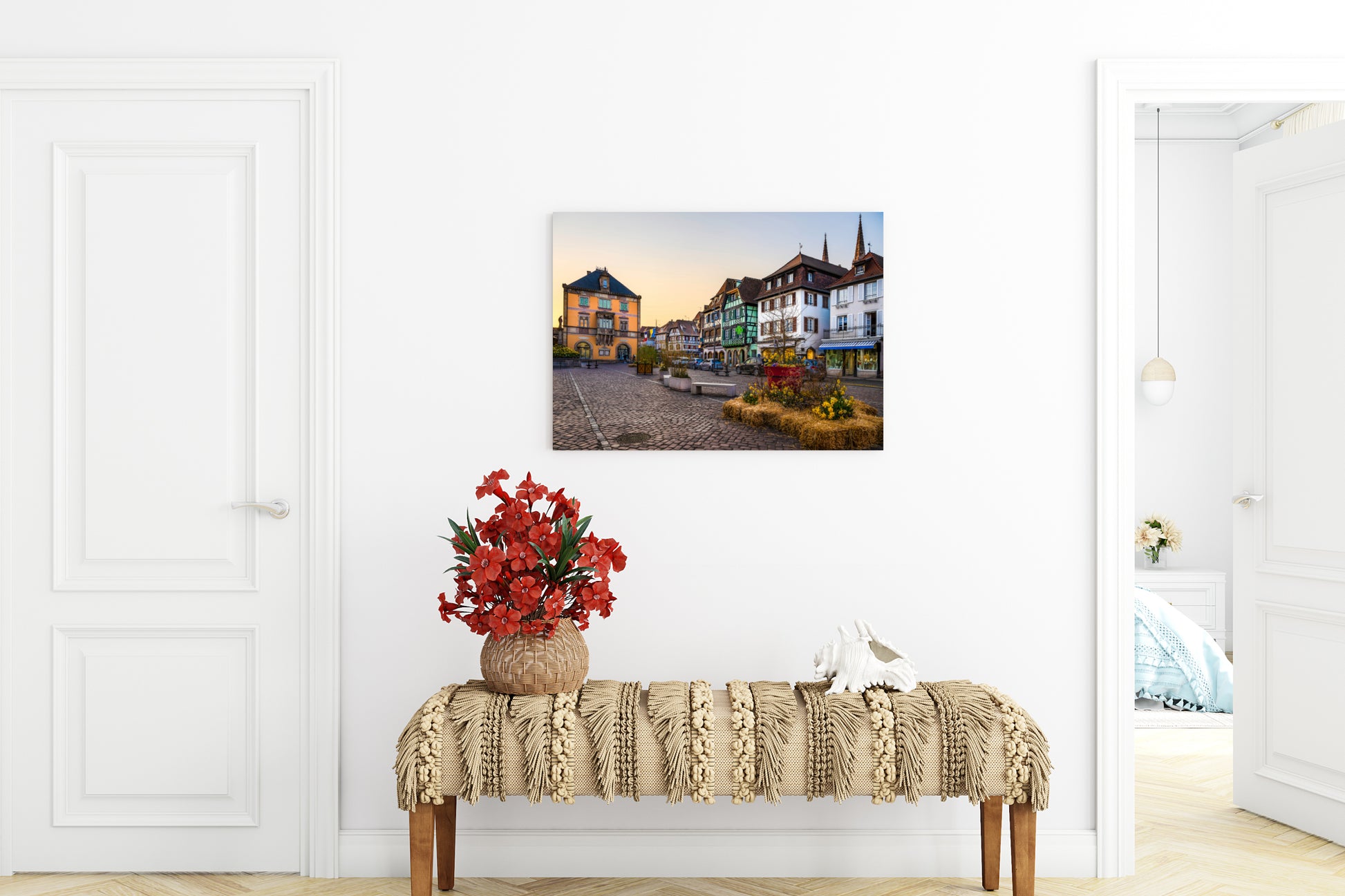 It may look like a German town, but this charming place is in France – in Alsace, where French and German cultures have mixed for centuries. The half-timbered houses reflect this blend and are still lovingly cared for by the locals. According to legend, couples once met here in secret, their love stronger than borders or languages. Warm evening light rests gently on the colorful buildings, while cobbled paths invite you to follow their quiet story. This artwork is more than just a view – it’s a reminder to slow down and find beauty right where you are.