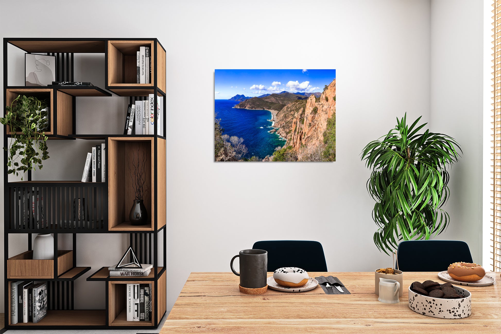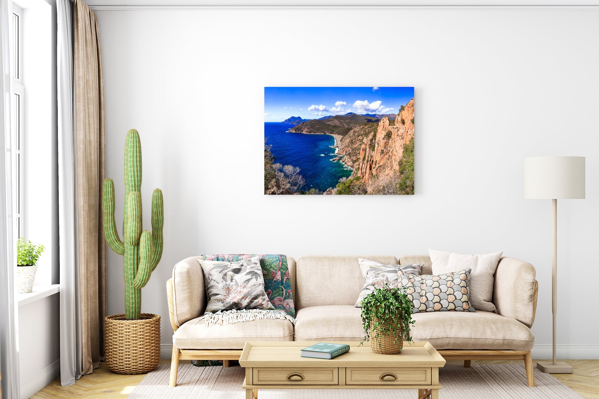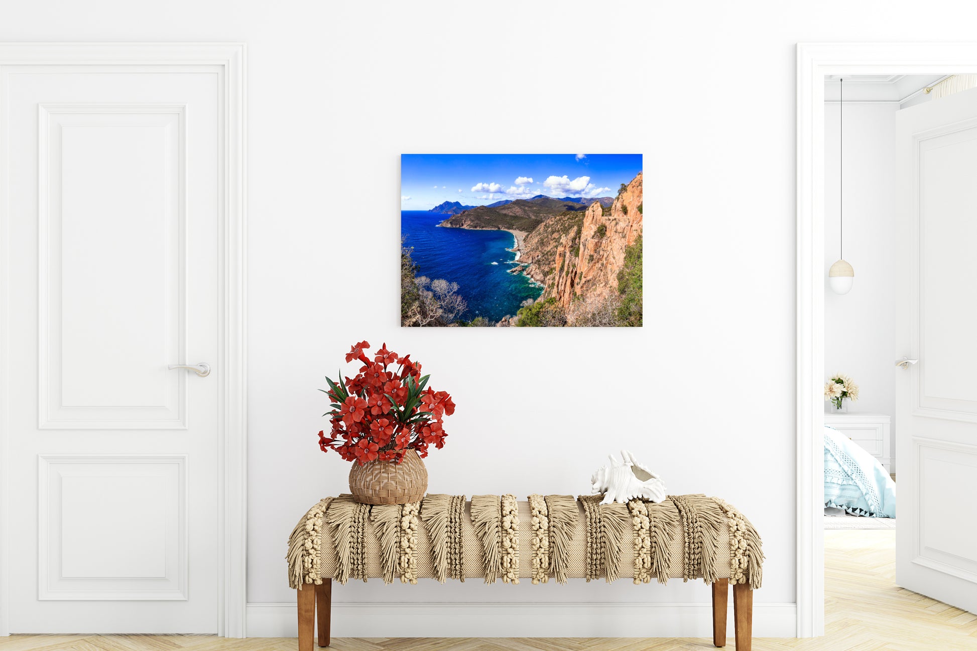 On the western coast of Corsica rise extraordinary red cliffs that have attracted travelers for centuries with their mystery. Interestingly, some researchers believe that these natural rock formations may have once served as shelters from pirates, hiding echoes of ancient civilizations. This is a place where the intense red of the cliffs blends with the deep turquoise color of the sea, creating a unique view of unmatched harmony that captivates anyone who gazes upon it. Narrow, winding paths between the cliffs reveal more mysterious corners, sparking the desire to discover unknown worlds. In this scenery, you’ll feel an extraordinary closeness to both history and nature, as if standing at the threshold of ancient stories, making this image transport you straight into the heart of Corsican landscapes.